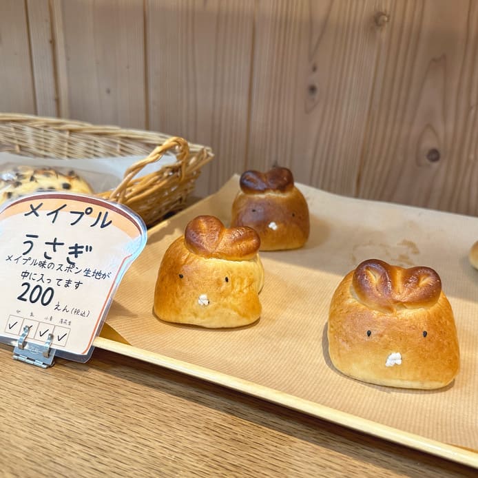 こちらのベーカリーカフェは、地元の方にも大人気。レジ横のショーケースにはケーキも並んでいます。夏はかき氷も販売していますよ♪ かわいいうさぎのパンを発見! せっかくなので、地元産のブルーベリーを使用した「ブルーベリーソーダ」と一緒に、外のテラス席でいただきましょう♡