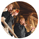 まずは西国三十三所 第八番札所の長谷寺にお参り。毎日正午になると、本堂横の鐘楼で、時刻を告げるほら貝が吹かれます。