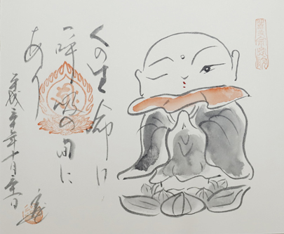 そもそもの始まりは、2~3年ほど前に四国から宗胤院を訪れた、とある有名な御朱印ブロガーさんに「何か描いてください」とお願いされて、「では…」と筆を取ったのがきっかけだそう。