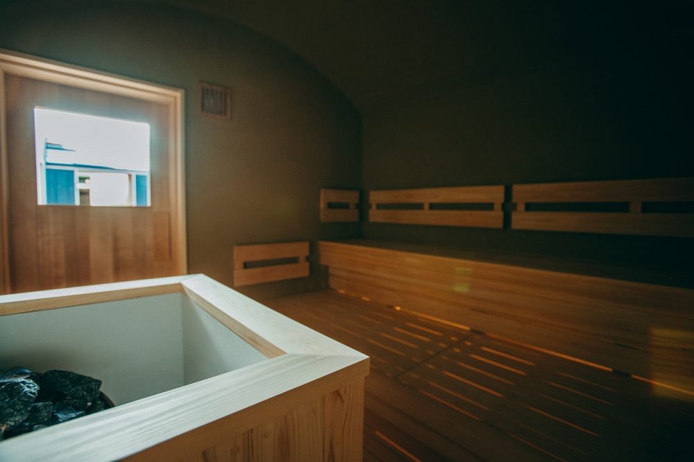 2008年廃業の宝湯が復活し再オープンした銭湯「御所宝湯」。フィンランド式サウナや新設の露天水風呂が人気で、宿泊者は入り放題。タイル壁にアーチを描く天井と当時の趣を残す浴場は、正面の壁面に葛城山が描かれ、自然豊かな山麓でゆったりとお湯につかっているかのような癒しの空間です。